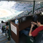 ABCの放送ブースも近く、解説が誰なのかが席からわかる。第一試合は帝京高校・前田監督。口癖は「あの~ですねぇ」