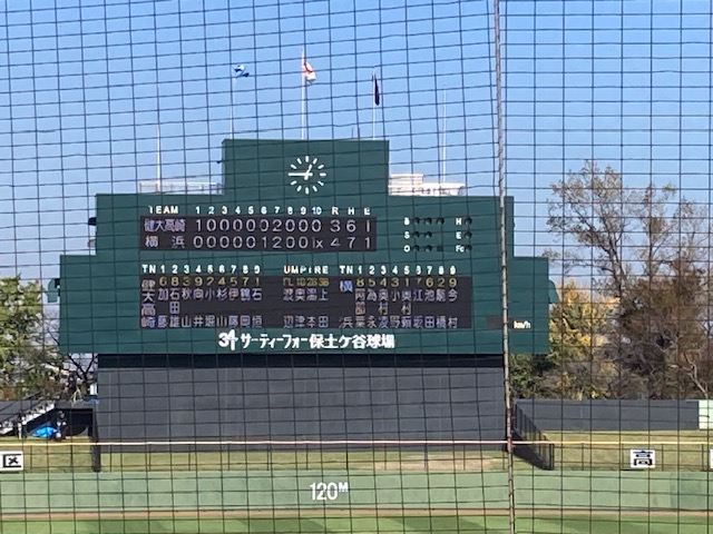 隣に座っていたカップルの女性の方が校歌はもちろん、横高の応援歌の歌詞も振り付けも完コピして熱烈応援されていた。いつ来てもディープな保土ヶ谷ネット裏。「やばい、神宮大会かー、休もっかなー」とのこと。はい、わたくしも同じくです。